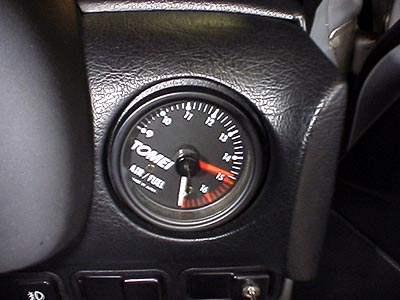 ↑これはソフトウェアで高負荷増量及びフィードバック補正を禁止したROMを使ってテストしている時の空燃比。ほぼ完璧にセッティングが完了した。見た目は東名の空燃比計だが、中身はインテグラルのDM-20Mなので正確無比。