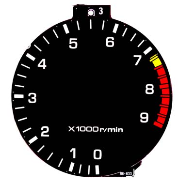 これが自作タコメーターの原画であります。実際は27Mバイトの巨大画像です。これをプリンターで印刷してどうにかしてやろうと考えてます。現状では厚手のインクジェット用フォトクオリティペーパーにインクジェットプリンターで印刷したものをそのままメーターパネルに使ってます。透過照明もOK。しかし、所詮紙なのでベコベコしてオーザックになってます(笑)。このオーザック化現象に対する対策はすでに考慮してあるのぢゃ!わはは!うまく出来たら作り方をここで公開しますね。