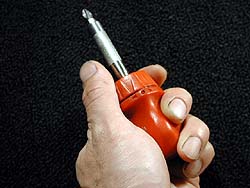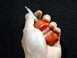 そして何と言っても素晴らしいのは標準で付いてくるこのACRビットだ。ACRビットのアンチカムアウト性能は実に素晴らしい。押しつける力をほとんど使わなくても滑らないのだ。試しにフルパワーでネジを締めながら押す力を徐々に緩めてみたが、押す力がゼロでも滑らなかった。それどころか引っ張る方向に力を加えても滑る事はなく、最終的はビットがネジに食いついたまま本体から抜けてしまった。「押し7の回し3」と言う+ドライバの基本を覆す素晴らしさ。ACRおそるべし! ラチェットではない普通のSnap-onの+ドライバでもACRを採用しているタイプが有るのだが、それよりもこのACRビットの方が耐久性も性能も上回っているように思う。普通のドライバのACRはすぐに目が潰れて初期性能を維持できないが、このビットはけっこ持ちが宜しい。さすがにビットの摩耗は保証してくれないのでビットが減ったら買い替えになるのだが、ビットの価格は数百円なので痛くもなんともない。もちろん本体が壊れれば保証してもらえるのは言うまでもない。このラチェッテングドライバ、一度使うと病み付きで手放せないお気に入り工具になる事は間違い無い。買って損はないですぜ。お勧めだす。