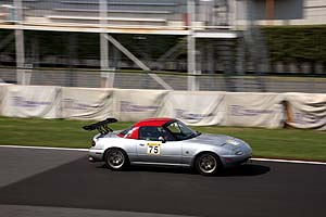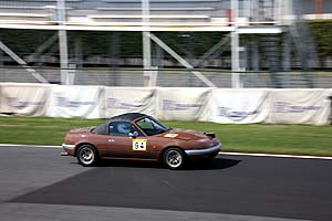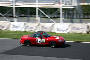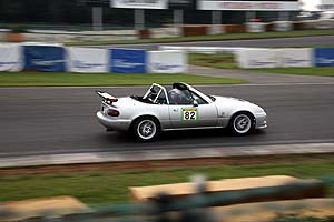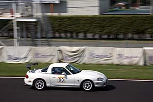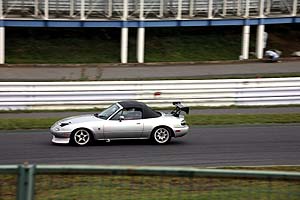 Rクラス9位は Iさじ号の10秒637。 ナラシが終わったばかりのNCで無理矢理走る。ブレーキングもコーナリングもヨレヨレのヨタヨタになってた(^^; ノーマルにダウンバネを入れただけでも10秒出ちゃうとはいえ、その動きはデンジャラス。近付きたくないクルマNo1でした(笑)。 ダンロップコーナの先でコースアウトしてたみたい。目標だった9秒台には1歩及ばず。