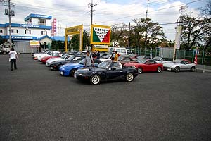 恒例のモナーク(筑波サーキット前のレストラン)駐車場に集まった参加者達。昼食&表彰式だ。昼食や懇談を楽しみ、表彰式や景品交換会が行われる。そして全員が今後の課題と来年への思いを胸にサーキットを後にする...