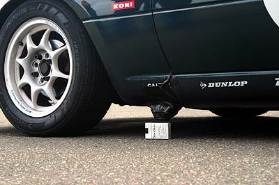 2号車もラップショットで拾えなかったらしく、急遽1号2号共に対策を施す。どうも間瀬のマグネットの磁力が弱いらしく、センサを路面に近づけて尚且つボディの鉄板からも離さないとダメらしい。 2号車は腹下にセンサを移動、1号車はセンサの位置を下げてみた。1号車は金属の影響を受けないよう、ダンボールでスペーサを作ってセンサ位置を限界まで下げた。シケインの縁石でセンサが吹っ飛ぶカモしれない(^^;;;そして1本目のスタート。スタートドライバは予選の後半を走った変態長。僅かにスタートをミスし、6位スタートのオオミチ号に前に出られてしまう。ポールスタートの2号車はそのまま絶好調に飛ばし、どんどん前に行く。1号はオオミチロドスタとシビックに前を塞がれて本来のタイムを出せない。時計を見ると、スタートから5分。どうしよう? 超早めのタイミングでドライバ交代するか?