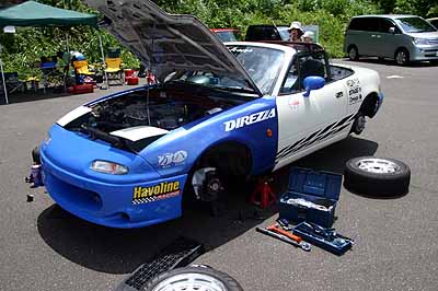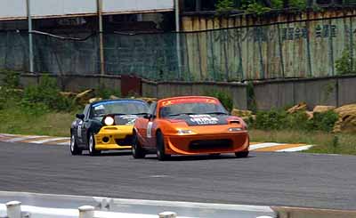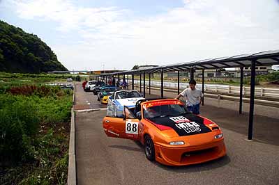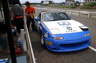 変態長は15秒0を記録し、予選4位。2号車はビール監督が14秒5を記録してポールポジションをゲット。2位、3位、5位、はEG4シビックだった。シビックvsロドスタの図式。