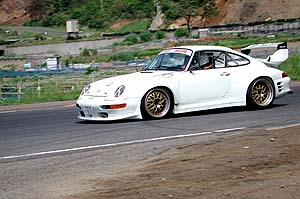 逆に高速シャッタは十分で、↑コレは1/500秒で止めたモノ。ホイールの回転まで止まってるので十分だろう。間瀬は高速シャッタで撮影すると畑が写るんで絵にならん(笑)。ちなみにシャッタは1/1000秒までいける。絞りがF22まで欲しかったな。それかASA50の設定が欲しい。スライドコピー時に出たようなノイズも無いし、直接撮影した方がキレイ。しかしサーキットの撮影でここまで使えるとはビックリした。シャッタのタイムラグ100msecは高級1眼レフのレベルからすれば遅い方だが、ヘタな銀塩カメラより速いのカモしれない。大容量バッファによる連続高速撮影も良好で、かなり使える。これに3倍テレコンが有れば345mm相当の望遠レンズになるんでサーキット撮影でもかなり使えるなぁ。
