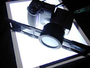 スライドコピーアダプタ。スライドフィルムのマウントやスリーブをコピーしちゃうモノ。フィルムスキャナも持ってるんだけど、連続で大量にスキャンするのがすごく面倒なのよ。こいつならパシパシと撮影するだけでスライドのコピーがじゃんじゃん作れるのだ。