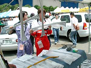 いろんな新製品を作り続けるDEWAさんの気合いはスゴイと思う(^^;。ちなみに私がプロデュースして開発されたVer.Maruyamaが北米で発売されて大好評なんだそうだ。ま、私が儲かるわけじゃないんだけど(笑)。他にもいろんなショップが来てたけど、ウチのサイトと関連の深いところだけ紹介してやめておこう(笑)。 一応一通り見て回ったんだけど、特に興味をそそるようなモンも無かったなぁ。