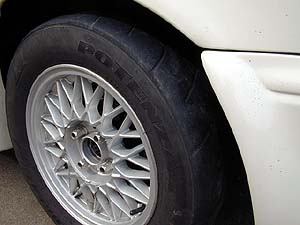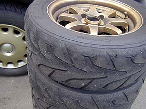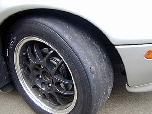 みんないろいろやってるようだが、私は基本的に去年の筑波から何の進歩もしていない。筑波の時に借りてた茶太郎のトランクリッドは返したので、筑波の時よりもクルマが重い(笑)。私もクソD01Jに見切りを付け、540Sを導入する事にした。どうせなら15inにしようかどうしようか悩んでいたのだが、15inの安いアルミをゲットできたのでそれを使う事にする。で、運良くそのアルミに195-55-15のタイヤが付いてた。ロドスタにピッタリなのでそれをそのまま使う事にした。タイヤの銘柄は良く解からないのだがDLらしい...