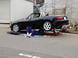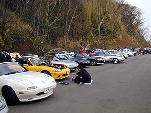 Bパドックに集まったロドスタ。黄色いNBはFCRキャブを現場でOHしてた。
