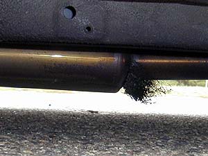 そして、さきほどから気になってたクルマの下を見る。実はナニかがブラ下がってたのだが、ABIT氏が「耐熱バンテージがハゲてるんだよ」と言ってるので気にしてなかった。でも確認の為に覗いて見ると...