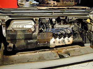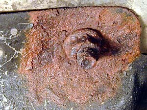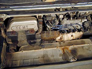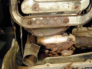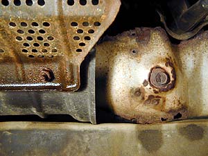 右側に見えるネジはエキマニのカバーなんだけど、これなんかほとんどカタチが無いぞ。とりあえず浸透潤滑剤をぶっかけてから挑戦! ...が、意外と簡単に緩んだ。あんだけ腐ってるのに滑る事も折れる事も無く。Snap-onフランクドライブで緩めてもらえるネジは幸せ者である(笑)