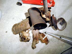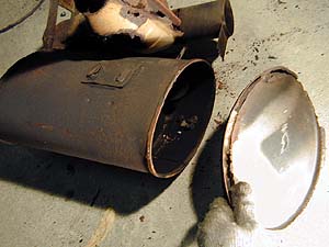 これが内側からの爆発ですっぽ抜けたマフラのフタ。中からは融けた触媒のカスが...
