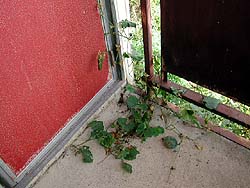 ウチのアパートは外壁にツタが繁ってる。昔はコレが伸びてくる頃に刈り取ってたんだけど、面倒だし涼しいから良いかって思って放っておくようになった。これが実に強力無比に伸びまくりまして、そりゃぁもうスゴイ事になってる。ま、それは良いんだけど...。