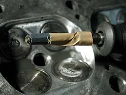 写真じゃ良く解らんだろうけどこんな感じ。バルブは加工用ダミー。2000番までやったので、あとは赤棒と白棒と青棒でバフ掛けすれば鏡面になるハズ...。ちなみにみんなもう忘れてると思うけど、このエンジンのポートは1年半前の時点で↓ここまで完成している。燃焼室が仕上がればヘッドはほぼ完成だ。