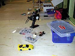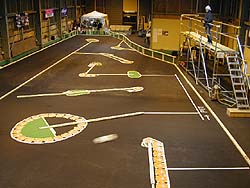 24メートルのストレートを持つ本格的インドアサーキット。この為に細粒アスファルトを敷いた。1/10ツーリングカーや1/12レーシングが走り回ってる。一番奥に見えるテントがお店スペース(笑)。こんなサーキットが16年前に有ったら私もラジコンをやめてなかったもしれない。んが、今更私がラジコンを始めたところですでに変態レベル(笑)に達している友人モロテックに追い付けるハズもなく、高価な機材を買い揃える財力も無い。が、なんとしてでも私にラジコンをやらせようという友人T&友人モロテックからの圧力を強烈に感じるわけである。絶対にラジコン界に復帰はしないと心に誓って16年...それをブチ破ろうとする友人モロテック&友人Tとの闘い。あうあう。