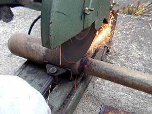 まずは問題のセブリングマフラの膨らみをサックリと切断してしまう。