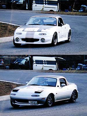 そして今日は、筑波サーキットに向けてロドスタを最後の仕上げ。問題のブレーキバランスは、ノーマルよりはリヤ寄りになったものの、まだフロントが効き過ぎ。もうちょっとPバルブにワッシャを入れる必要が有りそうだ。しかし、今日はもう時間切れなのでこのままの仕様で筑波に行く事にする。リヤが効き過ぎになってしまったのなら直さなきゃならんけど、これくらいならまぁ走れるから良しとして置こう。ホントは不満なんだけど。ノーマルの椅子もすごく不満なんだけど(笑)。 PPFにマフラステーが干渉してうるさかったのを直し、レインXとワックスをかけた。こんなモンだろう。