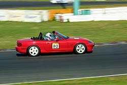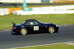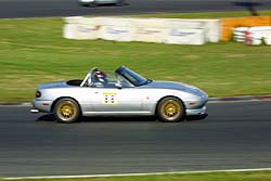 あきやま号低速コーナは苦手ながら高速コーナが得意なドライバ。NA6ノーマルエンジンでかなりのタイムを出す根性の走り。今年は吸排気系を改善して少しはパワーアップ。今年はどこまで行くか?