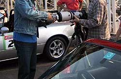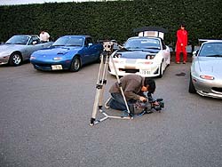 更にCanon EF300mmF2.8という超弩級レンズ vs SONY製DVの熱き闘い。だからあんたはナニをやってるんだっつーの(笑)。ご覧のように撮影部隊はかなり怪しかった。どうみてもTV取材にしか見えない超大型カメラを担いだヤツ、DVを2台体制で撮影するヤツ、Nikon F4、Canon EOS-1v、300mmF2.8、プロ用機材がうじゃうじゃ。他の走行会のヤツらからはナニ者かと思われてただろうな(笑)。