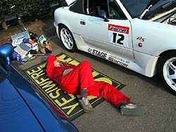 トップタイムは三重のオリーブなんとかってショップのワークスマシンらしく、筑波最速決定戦に出る為のセッティングだとかなんとか。ヒータも無いしアンダーコートも無いような俗に言うフルチューンってヤツ。次元が違うレーシングカーが参加したようなモンでこんなのは番外だよね。2番が友人T号、ファインチューン程度のNA8でレーシングカーと同等のタイムはご立派、あんたは二日酔いの方がタイム出るのか?(笑)。 3番はオヤジレーシングのウェーバRS氏、3位までにトロフィーが渡された。4番が僅差でトロフィーを逃した大市民氏。前評判通りのオヤジレーシングメンバが上位に。私はやっとで11番(ioi) Fire号が完調だったらオヤジレーシングと長岡勢が見事に絡み合い、そこに割り込むあきやま号という予想通りの結果になったハズなのだが...。