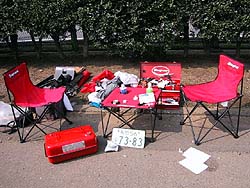 表彰式ではみんなが持ち寄った景品をクジ引きで配る。余ってるパーツやらPentiumIIIから超弾くスプレー(笑)までさまざまな景品が乱れ飛び、皆さんがとっても楽しんだのではなかろうか。細かく配慮された気持ち良い運営をやってくれたオヤジレーシングにみんなのステキな笑顔と感謝の拍手が贈られた。