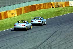やっべー、タナボタ号とFire号は紙一重じゃんか(^^;。しかし直前情報で予測したメンバが見事なまでに上位を占めた。でも今回も長岡勢の圧勝って事で。ちなみにこの7台中NB8Cが3台、NA8Cが2台、NA6CEが2台でした。今回の反省点は、足とタイヤの安定性に頼り過ぎてアグレッシブな攻めを忘れてた事かな。タイムは去年より上がってるけど、去年は無理矢理限界を引き出して出したタイム、今年は安心して楽々と出したタイムって事。もっとアグレッシブに攻める事も出来たし、むしろこの足でアグレッシブに攻めた時にどんな動きが出るかを試しておくべきだった。去年より1ヶ月早い時期だし、この時期としても気温がかなり高い日だったので、例年のように10月下旬の涼しい日ならもっとみんなのタイムが上がってただろうね。