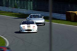 前方に見えるタナボタ号を追う。1周で追い付いて再び2ヘア、タナボタ号はチョロチョロとケツを流している。立ち上がりで抜ける。さっきと同じようにラインをクロスさせてストレート勝負! と、ここでタナボタ号も後ろにスッ飛ぶように消えた。本人曰くシフトミスらしい...。あんたらって...ミスが多すぎ(笑)。 ちなみにこのバトルの一部始終はすべて車載カメラに収まってます。私の叫びとかも(笑)。