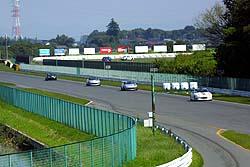 トップは友人T、私は2番手、そのタイム差は4/100秒。やはり予想通りのメンバが上位を占めた。しかし7秒台の争いになるだろうなんて言ってたのは誰だ?(^^;;; ピーカン晴れで気温も路面温度もかなり高めだったせいか?(笑)で、2本目のスタート。ところが、前の走行組でコース全域にオイルをブチ撒けた車両が出たらしく、オイル処理でかなりの時間をロス。コース全域にオイル処理用の大鋸屑を撒かれてしまった。これではまともなタイムアタックなどできまい。それでも私が先頭でコースイン、すぐ後ろにタナボタ号がついてきている。ゆっくりと1周回りながら試しに大鋸屑を踏んでみた。すると私の後ろにずぼぼぼぼぼぼ〜っと強烈な大鋸屑が舞い上がり、タナボタ号が煙りの中に消えて見えなくなった。思わずメットの中で笑う私、たぶん「なんてヤツだっ!」と叫んでいるであろうタナボタ氏(笑)。ちなみにビデオだと私が笑っている声が入ってます。あとから聞いた話によると、タナボタ号のフロントウィンドの内側では大鋸屑が渦巻いてすごい事になっていたらしい。そのうちに大鋸屑も吹き飛んで影響が無くなってきたのでペースを上げてみる。最終コーナを真面目にノーブレーキの4速で進入して立ち上がったらタナボタ号が後ろにいる。今回はコースアウトしなかったらしい(笑)。トラウマを克服できたのか? 最終コーナの走り方を思い出させてしまったのか? 不味かったか?