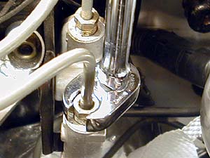 Pバルブ根元のフレアナットは緩めにくいが、このようにして緩めれば簡単である。