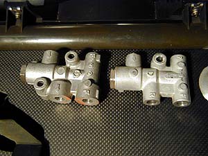 左が1800用、右が1600用。取り付け寸法はまったく同じで互換性が有るが、バラしてみたら内部構造はちょっと違った。Pバルブはフロントに対するリヤの液圧を下げる働きが有るわけだが、1800ではフロントブレーキの効きが強すぎるので1600よりリヤの液圧が高めになるようになってる。それでも1800のブレーキバランスはかなりフロント寄りなので、分解して1mmのワッシャを入れた。