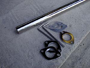 マフラ材料屋さんから購入したパーツ。これをバリバリと溶接する。が、問題発生。フランジが実はスチール製なのだ。ステンレスのものは設定が無いそうで、仕方なくスチール製のフランジを買ったのだが、ステンレスパイプとスチールのフランジを異種金属溶接するハメになる。アーク溶接でステンレス用の溶接棒を使うとスチールにうまく馴染まない。ほとんど無理矢理くっつけた。ちょっと不安だなー。