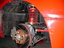 こちらはフロント。実はフロントはロッド長が長くてバネが遊んでる。一応それなりの理由が有る。それはまたいつか...ま、この足の詳細はいずれレポートしましょう。しかし、フルオーダとは言え一発でセッティングが出るとは思えず、筑波でセッティングが合っているかどうかはまったく不明。何度もテストと仕様変更を繰り返したのならともかく、完成したばかりのぶっつけ本番でどうなる事やら...?