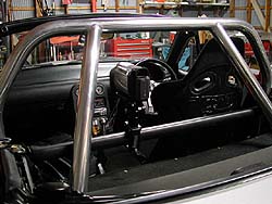 こちらのお店でトータルアライメントテスタをお借りした。今回はショートケースのダンパでストロークには余裕がタップリ有る。底突きの心配は皆無なので、車高は下品なほどにまで下げた(笑)。これによりキャンバの余裕がかなり有る。そこで思い切ってキャンバを付けちゃう。去年は1.5度程度しか付いてなかったのだが、今年はどーんとキャンバを付けますよ。 って事で挑戦したアライメント調整、左リヤがトーとの成り行きで目一杯まで付けたキャンバが3度。これに合わせて右リヤも3度に。フロントも方側の目一杯が1.9度くらいだったので、それに反対側を合わせて1.9度。リヤトーが0.2度くらい、フロントトーが0.14度くらい。もちろんスラストアングルはゼロ。車高が低い分だけ去年よりキャンバを強く出来たが、本当はもうちょい付けたかった(笑)。もっと車高を落とさないと駄目なのかな(^^;。事情により切断してあったブレイスバーはMIG溶接機を借りて溶接。室内火災を恐れて巨大なスパッタシートを張ってやったが。ブレイスバーそのものはやっぱり燃えた(^^;。カーペットや幌は燃えてないから良いけど。