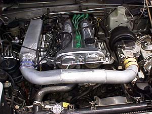 で、私と同じくフラップ式エアフロを愛する吸気系交換マニア氏は当然ながらエアフロ付きで4連スロットルを制御してしまった(笑)。もちろんECUはB63HベースのROMチューンだ。B6のマニを切断して、カローラのマニと合体溶接、ワンオフのインダクションボックスとインテークパイプを作ってエアフロを接続した。スロットルが4つ有って独立してたとしても、エアフロの口径は同じなんだし、インテークパイプのレイアウトも同じようなモンで、コレだと単にスロットルが4つになって下流に移動したってだけカモ(笑)。インダクションボックスの入り口は一つなんだしこれじゃ全然意味が無いような気もする。それでもエアフロを付けるメリットは大きいのだ。でもそれじゃ4連の意味が...(^^;;;エアフロを使う事により、どんな吸気システムだろうが、実際にエンジンが吸入した空気の量を測定してそれに見合う燃料を噴射するわけで、燃調を取るのは実に簡単だし狂いようが無いのだ。燃調は微調整で済むわけで、あとは充填効率が変化した分だけ点火時期マップを書き換えてやれば良いだけ。このセッティングの簡単さと正確さ、そして一度セッティングを出してしまえば狂いにくい精度の高さ、これこそがL-ジェトロの最大のメリットである。