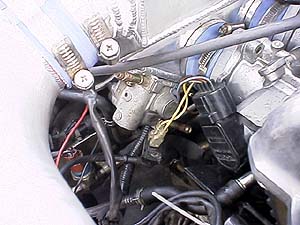 スロットルセンサは回転方向がB6やBPと逆になってしまうのでマツダ用は使えず、トヨタのスロットルセンサをそのまま使ってアイドル接点だけを生かしている。全開接点は残念ながら死んでいる。B6は元々アイドル接点と全開接点が有るだけで、リニアなセンサにはなってない。アイドル接点が生きてるだけでも半分は機能してるって事だ(笑)。全開接点のON−OFFによってECUがナニを制御しているか調べてみると、大した事はやってないようなのでアイドル接点が生きてれば他の部分のセッティングでなんとかカバー出来るみたい。スロットルワイヤーは適当なモノを探して使ったらしいが、一説によるとペルソナというレアなクルマのモノを使ったらしい。