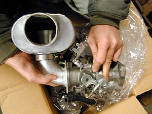 ここまで苦労して毎日セッティングするくらいなら、キャブでも良いじゃん、と吸気系交換マニア氏は考えた。4つバルブが有るんだから似た様なもんだろと。さっそく吸気系交換マニア氏はSOLEXφ44を取り付けた。最初はその豪快な吸気音やクラシカルな雰囲気で喜んでいた吸気系交換マニア氏、空燃比計を取り付けてマジメにセッティングし始めるとどうにもならん事に今更ながらに気付く(笑)。ジェットのセッティング次第で空燃比はそこそこうまく出せるのだが、やはり4連スロットルと同様にスロットル下流のマニ部分が短いってのは同じなわけで、どうしてもハーフスロットルのトルク感やツキが悪い。インナーベンチュリを細くすればハーフスロットルや中低速でのフィールは良くなるが、高回転高負荷域でフケない、インナベンチュリを大きくすればその逆となる。ある程度妥協してセッティングをうまく出したとしても、やはり午前と午後で空燃比が大きく変る。もちろん翌日になればまた変る。結局、酸素密度が濃い時に危なくない程度に濃くしおくと、酸素密度が薄い日には空燃比が濃くなり過ぎて黒煙を吐いてフケない。ま、そこそこフケてるんだろうけど、本当に最適な空燃比を出したベストセッティングには程遠いわけで、結局は全体的に妥協の塊のようなセッティングとなる。これではエンジン本体の性能を生かしきれてないわけで、毎日の空燃比の変化を高精度A/F計で見ていた吸気系交換マニア氏は、結局キャブも駄目出しで捨てた(笑)。