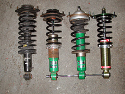 左からノーマル、TEIN-HA、TEIN-NA、ASA、の4本だ。ASAのケースが極端に短いのが解るだろう。これだけ短いと底突きはほぼ皆無となる。