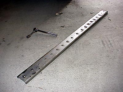 これがアイザワのデフォルトの取付け状態。これだけ長いスパンで前と後ろの2個所でボルト止めしてあるだけ。この補強材には曲げ応力が発生する。補強というのは引っ張りと圧縮方向に応力が発生するように取り付けると効果的なのだが、曲げ応力が発生するような取付けでは補強そのものが余程頑丈なモノでない限り強度は出ない。どんな素材でも引っ張りと圧縮には強いが(特に引っ張り強度は極端に大きい)、曲げに対してはとても弱いのだ。割り箸をハンドパワーで伸ばしたり縮めたりするのは不可能に近いが、曲げたり折ったりするのは簡単なのと同じ事。ど〜だバーのように引っ張りと圧縮方向で力を受けるモノはとても効果が大きいのだが、このような曲げに対抗するような取付けの補強ではその効果は怪しいモノだ(笑)。