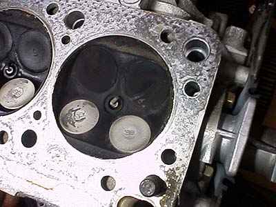 ヘッド側燃焼室。これも綺麗な方だが、ナプロ実験の写真と比べて欲しい。ナプロの時は32000Km走っていたにもかかわらず地金が見えている部分も有ったのだ。ナプロおそるべし!