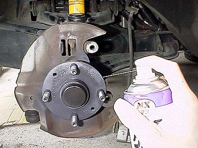 ハブとローターの当たり面に二硫化モリブデンをスプレーしておく。こうすると錆付かないので次回の分解作業が楽だ。