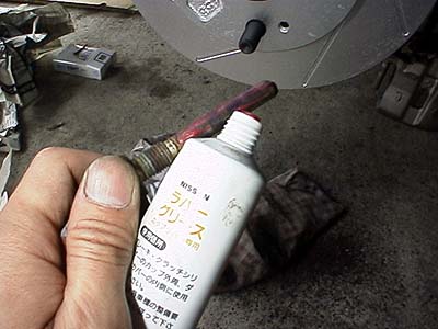 磨いた金具にブレーキグリスを薄く塗る。ここに使うのはラバー用ではない。