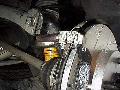 完成。ど〜だローターがカッコイイ(笑)。リヤブレーキも注意点は同様だ。ピストンを戻すのは裏側の六各穴付きボルトだが、このやり方は某低レベルな雑誌などにも紹介されているのでここでの説明は省く。パッドを開くスプリングの向きを間違える人がいる様なのでその向きだけ載せておこう。