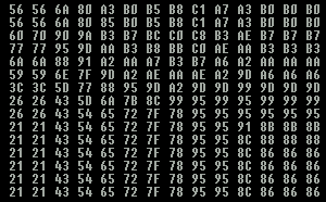 上が点火マップ、下が燃料マップである。アドレス表示開始位置の都合上、上の点火マップは15X16の領域が表示された状態で、上側表示部の下1行はマップ領域ではない部分が表示されている。