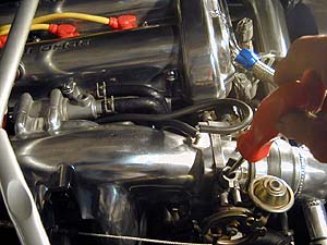 まず、スロットルボディのアイドル調整スクリューは締め切った状態で始動しよう。完全暖機までやって、冷却水のエア抜きも当然やる。各部の作業にミスが無いのを確認するのも当然だ。