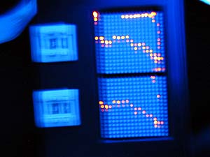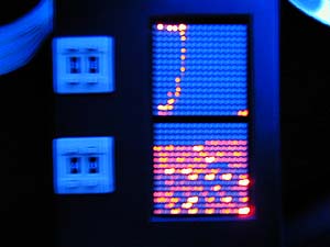 ↑ご存知のようにロドスタの点火マップは通常14X15で縦軸は15マス有るわけだが、これは実はノーマルだと全部は使ってない。下の半分はあんましアクセスしないのよ。空気充填率が上昇すれば下に進み、回転数が上がると右に進む。マップ左上がアイドル、マップ右下が全開高回転となる。じゃんぼスロットルで空気充填率が上昇すれば、今までよりも下の方までアクセスするようになるハズ。尚、下のアクセス状態は空ぶかしの時であり、実走行時にはまったく違うアクセス状態となる。また、Fire号は基本噴射補正係数をいじってるので縦軸のスケールも通常とは異なる。ノーマルROMでのアクセス状態はまた違った形になる筈だが、スロットル交換前後のテストでは同じROMを使用している為、データの比較としては問題無かろう。。Fire号の場合、このマップを16X16に拡大している。その16X16のマップ領域をそのまま表示させちゃうのが下のマップトレーサだ。残念ながら、ノーマルスロットル時の写真は無い。