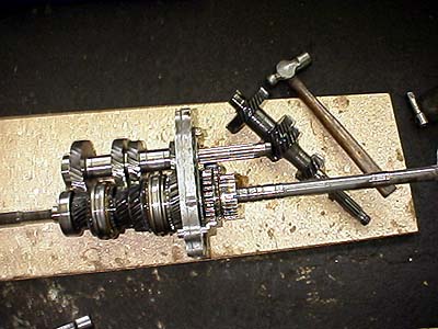 無事にカウンターギヤがはまった。抜く時と違って簡単に入る。先にメインドライブシャフトをプレスで完全に押し込んでおいてからカウンターギヤを入れる。カウンターギヤが入ったら反対側からベアリングのインナーレースを入れる。インナーレースを入れるのは適当なパイプとハンマーでOKだ。ここまで来ればもう完成したようなもの。わはははははは。次回に続く!