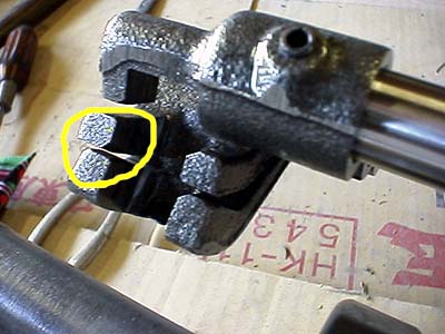 これが調子に乗って付けた部品。この3本の爪をシフトレバーが選択することでシフトフォークを動かしているわけ。黄色で囲った部分の真ん中あたりの角の部分が斜めに落としてあるのがロドスタのミッションの特徴。2〜3速へのシフト時に斜めにシフトレバーを叩いても入りやすいようになっているわけ。これは初期の頃のロドスタのカタログにも書いてあったくらいなのだ。