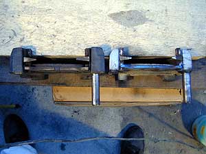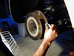 NB8Cのロータを取付け、ギヤを入れてエンジンを回し、サビ落しの即席旋盤加工(^^;。真似してはいけません。特にトルセンLSDでやると非常に危険ですので真似しないように。