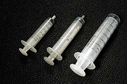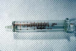 そこでガラス製の高級注射器も試してみた。これなら誤差が少ないかと思って買ってみたのだが、結果はプラスチック製安物注射器と大して変わらず、使いにくい分だけ疲れるだけだった。2個買って使い初めてすぐに1個割っちまったし(笑)。