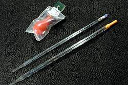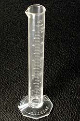 次に試してみたのがピペットだ。5ccと10ccのモノを試した。コレも注射器と結果は同じで、測定するたびに結果が違ってしまい、測定再現性が非常に低い。だんだん燃焼室を使って測定を繰り返すのが面倒になってきた。ナニが正しくてナニが狂ってるのか解らん。そこで実験用に買ったのがメスシリンダだ。メスシリンダなら絶対的に正確だ。