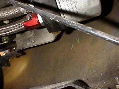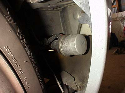 同じくオイルエレメントはフェンダー内部に移動される。これも高い方と同じく電子式油温計のセンサー取付け穴が付いている。油圧計を同時に付ける事も出来る。